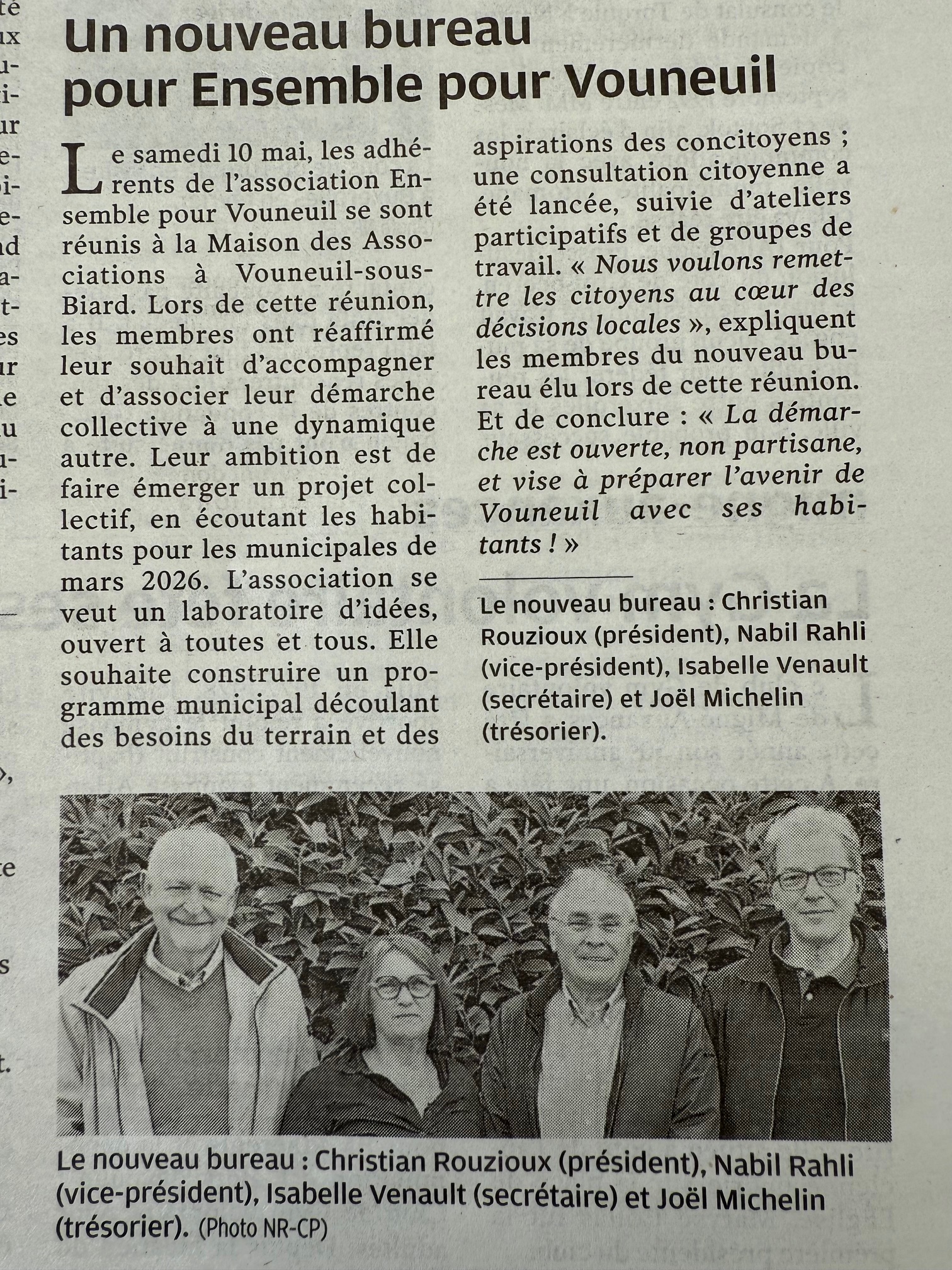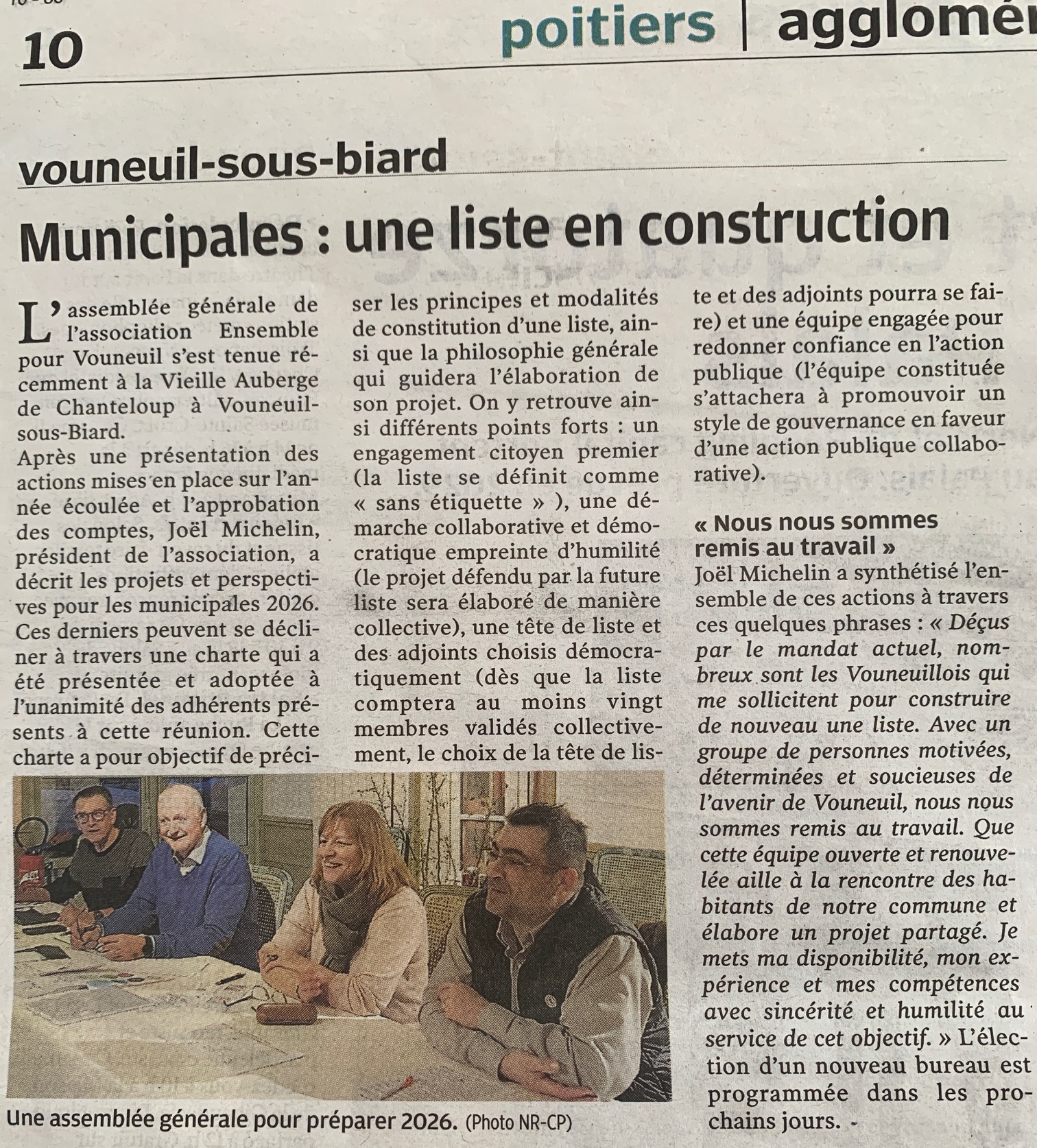 Premier tour : 15 mars 2026 | Second tour : 22 mars 2026 – Ensemble pour Vouneuil